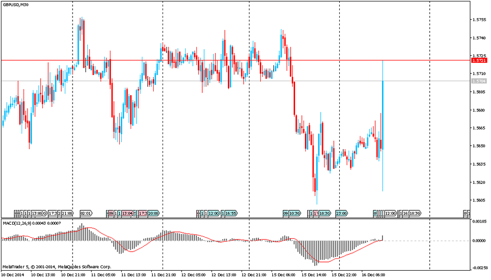 Фунт отступил от сессионного максимума против доллара, но все еще продолжает демонстрировать существенное повышение. Основную поддержку фунту оказал отчет Банка Англии и данные по инфляции. Национального бюро статистики заявило: инфляция замедлилась до 1% в ноябре по сравнению с 1,3% в октябре. Экономисты прогнозировали, что цены вырастут на 1,2%. Падение транспортных расходов, а также снижение цен на рекреационные товары способствовали замедлению. Базовая инфляция, исключающая энергоносители, продукты питания, алкогольные напитки и табачные изделия, снизилась до 1,2% в ноябре по сравнению с 1,5% в октябре. В месячном исчислении потребительские цены снизились на 0,3% в ноябре по сравнению с ростом на 0,1% в октябре, хотя эксперты ожидали роста на 0,1% в ноябре. В другом докладе УНС говорится, что отпускные цены производителей продолжили снижаться в ноябре - они сократились на 0,1%. Однако снижение идет медленнее: в октябре оно было зафиксировано на уровне 0,5%, а эксперты прогнозировали падение на 0,2%. В месячном измерении отпускные цены производителей выросли на 0,2%, компенсировав 0,3% падение в октябре. В то же время закупочные цены снизились в более быстром темпе (на 8,8% после -8,4% в октябре). Экономисты прогнозировали падение на 8,3%. На ежемесячной основе закупочные цены упали на 1%.