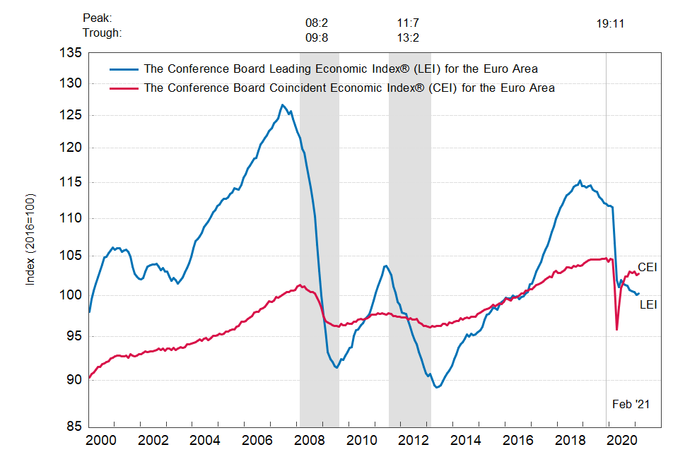 Результаты исследований, опубликованные Conference Board, показали: по итогам февраля ведущий экономический индекс (LEI) для еврозоны вырос на 0,1 процента, и составил 100,2 пункта (2016=100).