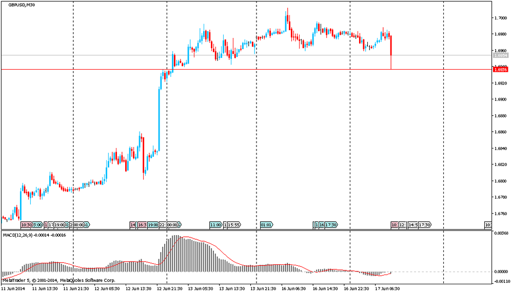 Валютная пара AUD/USD значительно снизилась после публикации протокола последнего заседания Резервного банка Австралии от 03 июня 2014 года. ЦБ заявил, что процентные ставки будут и далее оставаться на рекордно низком уровне из-за низкой инфляции и слабости экономики. Хотя основная причина удержание ставки на рекордно низком значении - усиливающийся экономический спад, вызванный сокращением инвестиций в горнодобывающую промышленность.