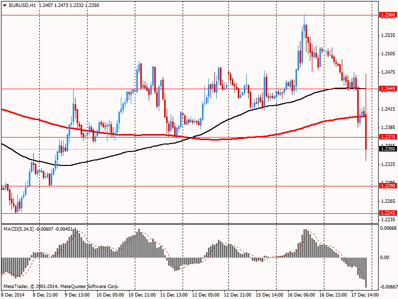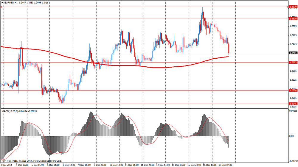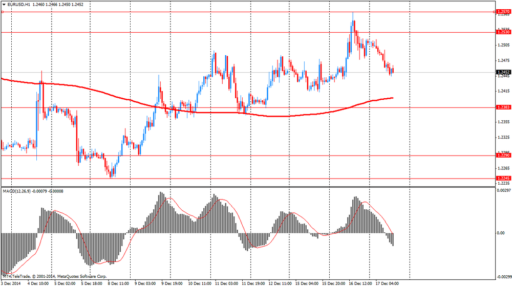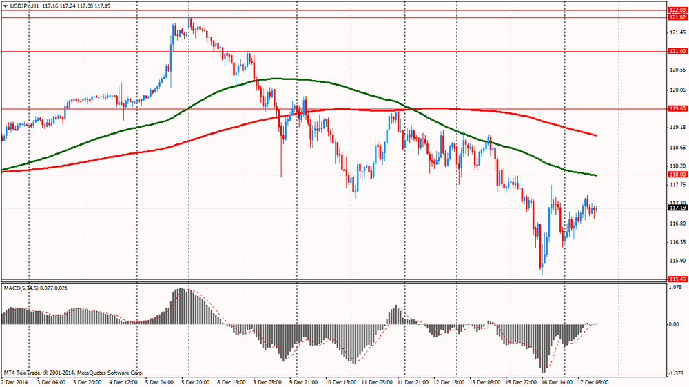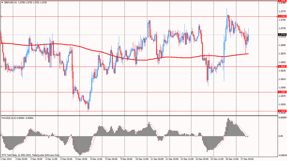 Фунт подешевел против доллара, опустившись ниже уровня $1.5700 в условиях повсеместного роста доллара на ожиданиях решения ФРС по монетарной политике и последующей пресс-конференции Йеллен. Незначительное влияние на его курс оказали данные по рынку труда Британии. Напомним, уровень безработицы в Великобритании за период с августа по октябрь снизился слабее, чем ожидалось. Показатель упал до 6% по сравнению с 6,2% за период с мая по июль. Экономисты прогнозировали безработицу на уровне 5,9%. В августе-октябре было зарегистрировано 1,96 млн. безработных, что на 63 000 меньше, чем за период с мая по июль. Это минимальный квартальный спад за период с июля 2013 года по сентябрь 2014 года. По сравнению прошлогодним показателем число безработных сократилось на 455 000. Уровень заявлений безработных на трудоустройство упал до 2,7% в ноябре, как и ожидалось, с 2,8% в октябре.