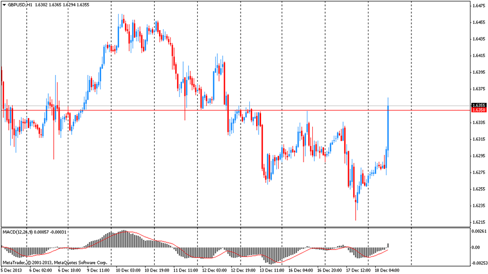 Курс фунта резко вырос против американской валюты после выхода оптимистичных данных по рынку труда, согласно которым число безработных в Великобритании в ноябре 2013 г. сократилось сильнее ожиданий, а безработица стала минимальной с апреля 2009 г. В ноябре число британцев, получающих пособие по безработице, сократилось на 36,7 тыс., свидетельствуют данные Управления национальной статистики. При том, что аналитики ожидали падения всего на 35,2 тыс.