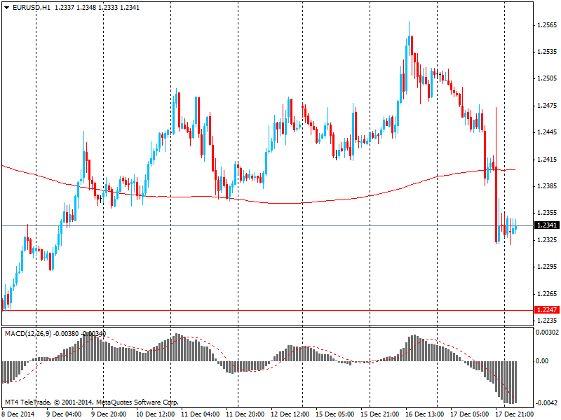 Поддержку американской валюте также оказали данные по рынку труда США. Министерство труда заявило, что число американцев, впервые подавших заявки на получение пособия по безработице, упало на прошлой неделе и осталось возле 14-летних минимумов. Это свидетельствует об улучшении ситуации на рынке труда. Количество первичных обращений за пособием по безработице, датчик увольнений, снизилось на 6000 и с учетом сезонных колебаний достигло 289 000 на неделе, завершившейся 13 декабря. Экономисты ожидали 297 000 новых заявок. Скользящая средняя за четыре недели снизилась на 750 до 298 750. Отчет также показал, что количество людей, которые по-прежнему получают пособия по безработице, упало на 147 000 (до 2,37 млн.) за неделю, завершившуюся 6 декабря.