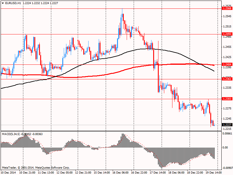 Поддержку американской валюте также оказали данные по рынку труда США. Министерство труда заявило, что число американцев, впервые подавших заявки на получение пособия по безработице, упало на прошлой неделе и осталось возле 14-летних минимумов. Это свидетельствует об улучшении ситуации на рынке труда. Количество первичных обращений за пособием по безработице, датчик увольнений, снизилось на 6000 и с учетом сезонных колебаний достигло 289 000 на неделе, завершившейся 13 декабря. Экономисты ожидали 297 000 новых заявок. Скользящая средняя за четыре недели снизилась на 750 - до 298 750. Отчет также показал, что количество людей, которые по-прежнему получают пособия по безработице, упало на 147 000 (до 2,37 млн.) за неделю, завершившуюся 6 декабря.