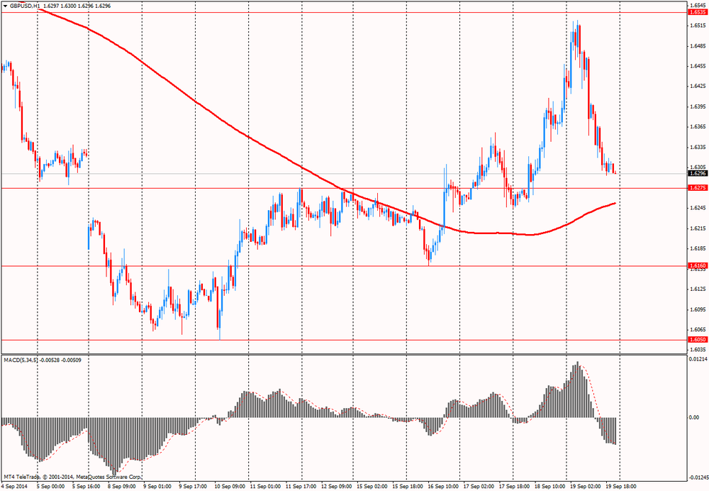 Эксперты говорят, что фунт поднялся до двухнедельного максимума к доллару США за счет предварительных итогов референдума о независимости Шотландии, показавших, что большинство шотландцев проголосовали против. Так как такой исход был в соответствии с прогнозами, интерес к валюте начал угасать, что и вызвало резкое падение в пятницу. Согласно последним данным, 55,3% жителей (2 001 926 человек) проголосовало против независимости, а 44,7% (1 617 989 человек) за. Явка была очень высокой - 84,6% или 4 283 000 человек. Против независимости проголосовали 28 административных округов, а за - всего лишь 4. Итоги референдума стали облегчением для многих, включая премьера Кэмерона, который объявил, что настало время «объединиться и продолжить движение вперед, меняя жизнь к лучшему», еще до завершения голосования.