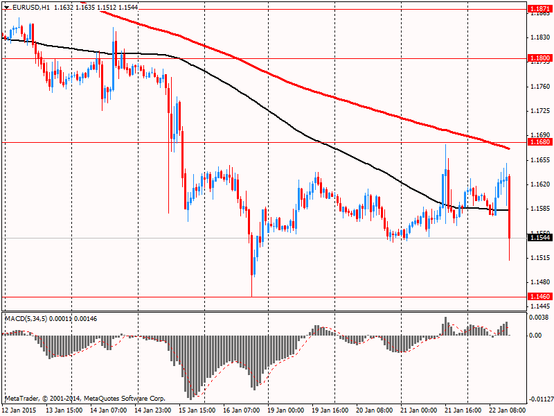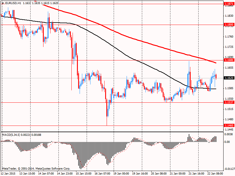 Динамика пары EUR/USD, вероятно, будет очень волатильна после оглашения решения Европейского центрального банка позднее сегодня, считают в IG Securities. Пара может испытать на прочность уровень $1,1884, если решение ЕЦБ будут соответствовать ожиданиям, говорят в банке. По сообщению WSJ, ЕЦБ начнет программу покупки облигаций на сумму около 50 млрд евро ( $58 млрд ) в месяц, которая будет продолжаться, как минимум, год. Если меры смягчения будут более существенными, чем ожидается, пара EUR/USD может пробить минимум $1,146 и продолжить снижение до $1,137. Этот уровень выполнял функцию поддержки с конца сентября до начала ноября 2003 года. Если, вопреки ожиданиям, ЕЦБ отложит начало программы стимулирования, разочарование может подтолкнуть пару выше $1,2000.