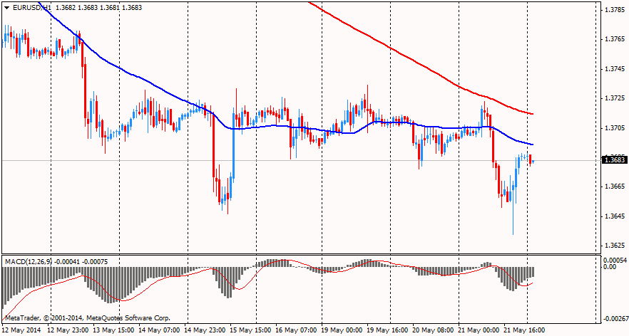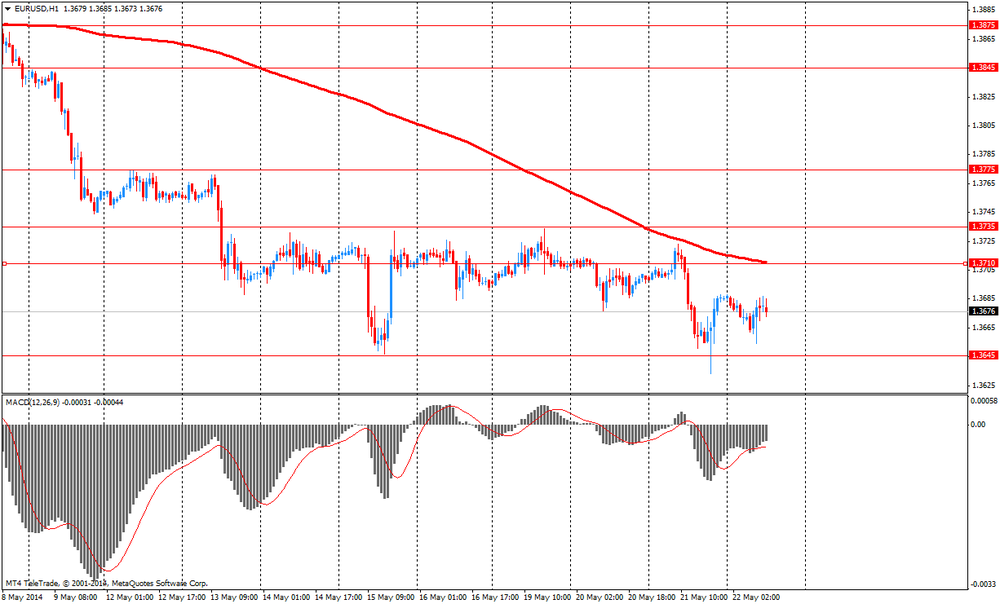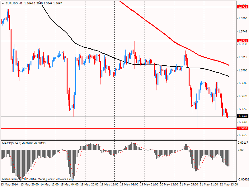 Евро снизился против доллара, достигнув при этом до минимальных значений сессии. Стоит отметить, что первоначально поддержку евровалюте оказали данные по деловой активности в секторе производства и в сфере услуг еврозоны, однако, эйфория от них продолжалась недолго, и вскоре началось умеренное снижение. Вероятнее всего, участники рынка переключили свое внимание на американские отчеты, которые хоть и оказались хуже, почти не оказали влияние на рынок Форекс. Один из докладов показал: число первичных заявок на пособие по безработице выросло на 28 000 и достигло с учетом сезонных колебаний 326 000 за неделю, завершившуюся 17 мая. Экономисты предсказывали, что количество обращений возрастет до 312 тысяч. Скользящая средняя за четыре недели для первичных обращений, которая сглаживает волатильные еженедельные данные, упала на прошлой неделе на 1000 до 322 500 . Многие экономисты считают, что уровень обращений ниже 400 000 является признаком улучшения условий на рынке труда. Число повторных обращений за пособием по безработице сократилось на 13 000 и с учетом сезонных колебаний составило 2 653 000 на неделе, завершившейся 10 мая. Это самый низкий уровень с декабря 2007 года.