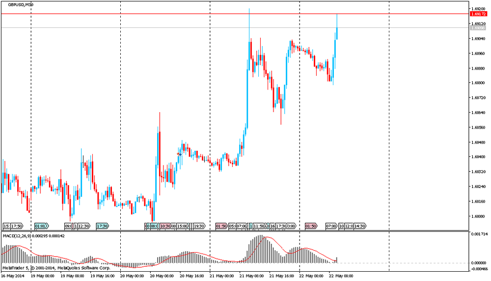 Фунт торговался с заметным повышением против доллара. Поддержку фунту оказали данные по розничным продажам. Розничные продажи Великобритании максимально увеличились с мая 2004 года по данным Управления национальной статистики. Объем розничных продаж, в том числе автомобильного топлива, расширился на 6,9% в годовом исчислении в апреле, что быстрее роста на 4,8%, который наблюдался в марте. Это был самый высокий годовой рост объема продаж с мая 2004 года, превысивший 5,3% рост, ожидаемый экономистами. Без учета автомобильного топлива розничные продажи поднялись на 7,7% после роста на 4,9% в марте, что также было выше ожидаемого увеличения на 5,4%. В месячном измерении в целом рост объемов розничных продаж улучшился на 1,3% в апреле с 0,5% в марте. В свою очередь, рост продаж без учета автомобильного топлива ускорился до 1,8% с 0,1%.