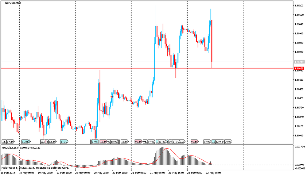 Валютные пары AUD/USD и NZD/USD, обновив минимум сессии, укрепились на фоне публикации предварительных данных официального индекса производственной активности Китая, согласно оценке менеджеров по закупкам, публикуемой HSBC Holdings Plc и Markit Economics. Показатель вырос к отметке 49,7 за май месяц с 48,1 (выше средней оценки экономических прогнозов 48,4).