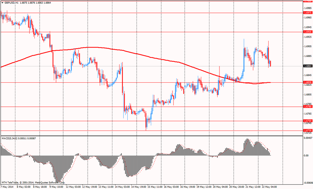 Фунт вырос к $1.6917, обновив сессионный максимум в ожидании сегодняшней публикации позитивных данных по росту ВВП Великобритании. Согласно среднему прогнозу экономистов, пересмотренные данные за первый квартал составят рост 0.8%. Что касается годового значения, то оно, вероятно, составит прирост 3.1%.