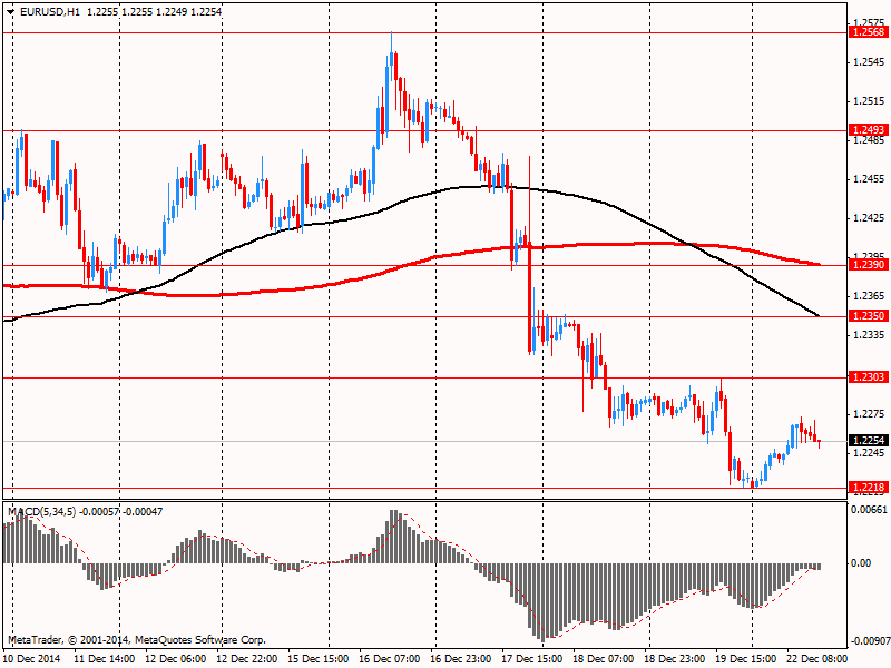 Евро торговался в боковом тренде против доллара после выхода данных по потребдоверию в еврозоне. Настроения потребителей 18 стран-членов еврозоны немного улучшились в декабре, причиной чего, вероятно, стало увеличение реальных доходов на фоне падения цен на нефть. Об этом свидетельствуют представленные в понедельник Европейской Комиссией предварительные данные.