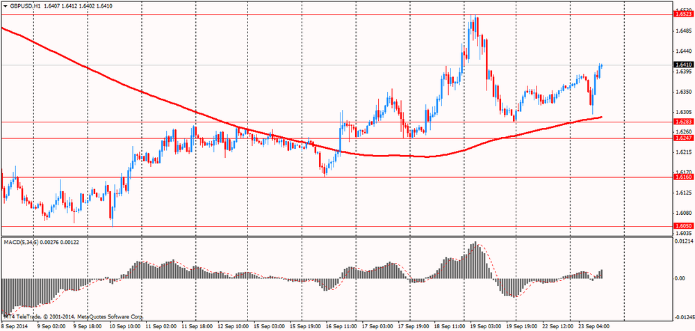 Небольшое влияние также оказали данные по США, показавшие, что продажи на вторичном рынке жилья упали впервые за пять месяцев в августе. Это знак того, что рынок жилья сталкивается с замедлением после оживленного лета. Продажи на вторичном рынке жилья упали на 1,8% в августе с июля и достигли с учетом сезонных колебаний годового уровня 5,05 млн., сообщила вчера Национальная ассоциация риэлторов. По сравнению с годом ранее, продажи сократились на 5,3%. Экономисты прогнозировали рост до 5,21 млн. в августе. Продажи в июле достигли 5,14 млн. вместо ранее озвученных 5,15 млн.
