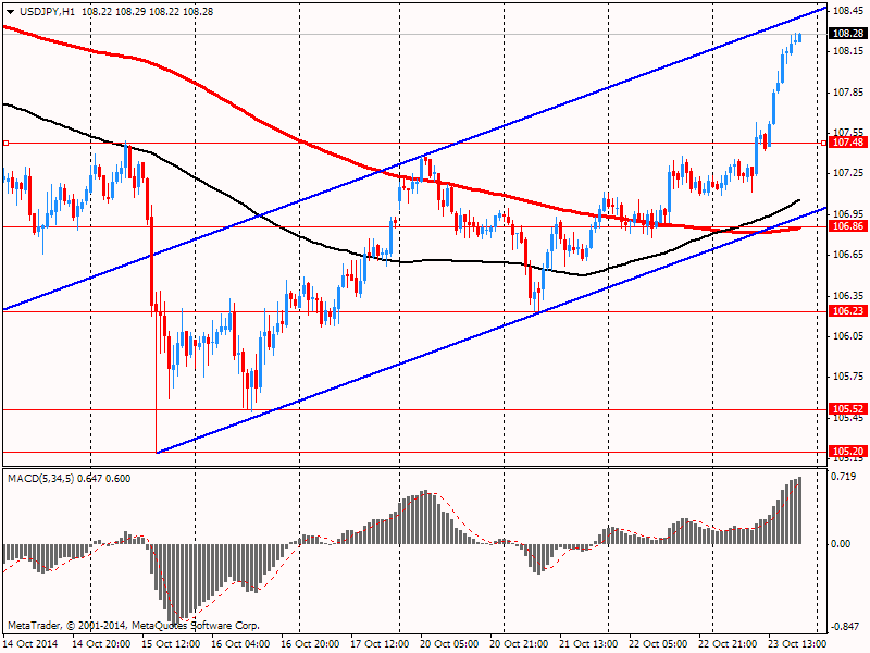 Настроения участников рынка также повысились, так как оптимистичные отчеты по корпоративной прибыли поддержали фондовой рынок США и развеяли беспокойство инвесторов по поводу замедления темпов мирового экономического роста. Опасения, что замедление роста мировой экономики может воспрепятствовать росту экономики США, побудили инвесторов пересмотреть ожидания о том, как скоро ФРС повысит ставки после завершения программы QE уже в конце этого месяца.