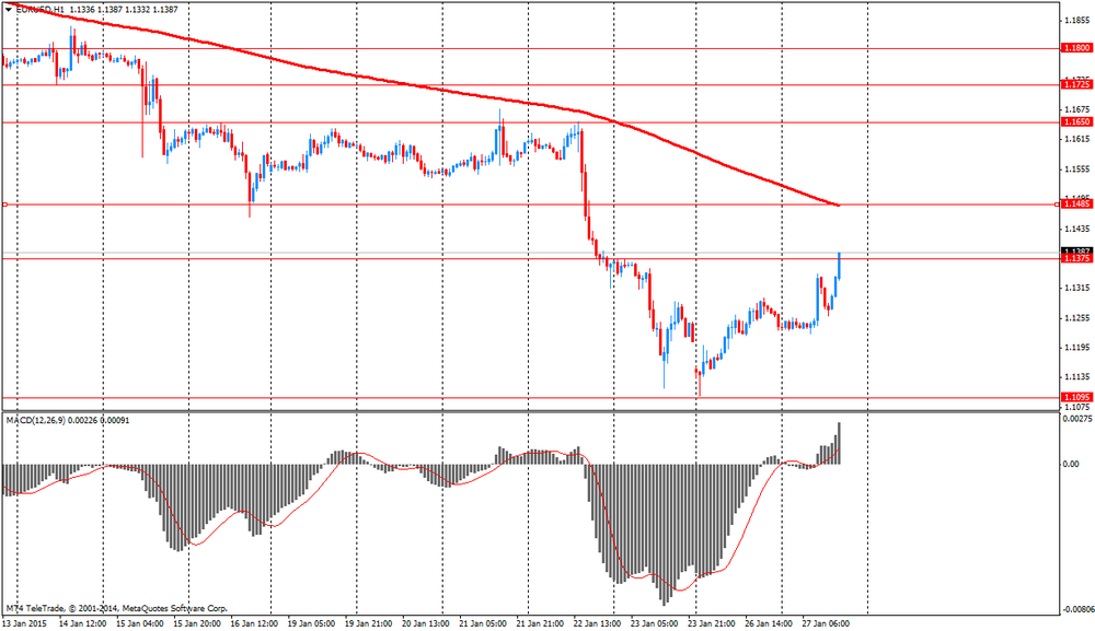 Евро торгуется в более высоком диапазоне после достижения в понедельник 11-летнего минимума, получая поддержку со стороны более сильного, чем ожидалось, роста индекса настроений в деловых кругах Германии Ifo до 106,7 в январе с 105,5 в декабре против прогноза 106,5, а также ухудшения отношения к доллару и разговоров о том, что победившая на выборах в Греции партия "СИРИЗА" будет следовать своей программе, выступая против мер строгой экономии, тем не менее, не настаивая на выходе страны из еврозоны.