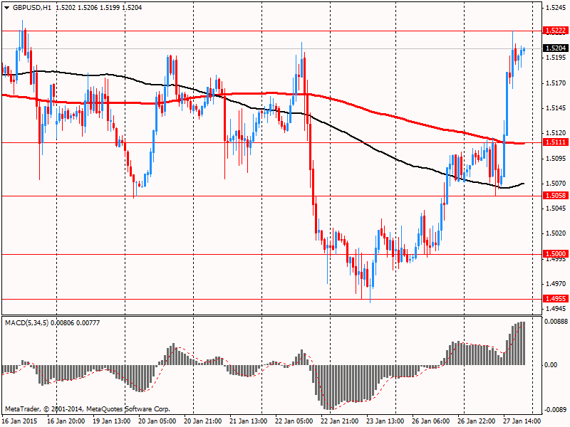 Потенциал роста пары ограничивается объявлением ЕЦБ о широкомасштабной программе количественного смягчения и сохраняющихся опасениях по поводу Греции.