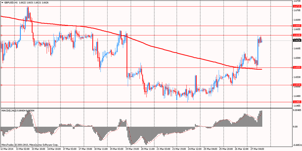 Курс доллара заметно вырос против евро, чему помогли положительные данные по ВВП и по рынку труда. Министерства торговли США сообщило: валовой внутренний продукт в 4-м квартале 2013 года вырос на 2,6% по сравнению с тем же периодом предыдущего года. Это значение выше второй оценки, согласно которой ВВП вырос на 2,4%, однако ниже прогноза экономистов относительно роста на 2,7%. Рост ВВП в 4-м квартале замедлился после роста на 4,1% в 3-м квартале, однако индикатор базовой силы экономики повысился. Рост реальных конечных продаж, которые не учитывают подверженные волатильности запасы, ускорился до 2,7% с 2,5% в 3-м квартале. В 4-м квартале потребительские расходы повысились на 3,3%, тогда как ранее предполагался их рост на 2,6%.
