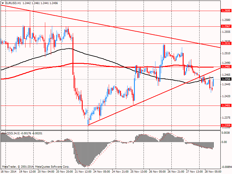 Евро провел свое первое снижение за четыре дня, в ожидании публикации данных по индексу потребительских цен в еврозоне в 10:00 GMT. С 2011 года темпы инфляции ИПЦ по сравнению с аналогичным периодом предыдущего года были ниже тренда, а с октября 2013 года инфляция упала ниже 1%, что заметно меньше целевого значения ЕЦБ около 2%. Слабость банковского кредитования была одной из причин падения потребительских цен, поэтому ЕЦБ и начал борьбу с этой проблемой. Последняя инициатива политиков, известная как TLTRO, включает в себя привилегированные ставки заимствования от ЕЦБ для европейских банков, которые могут продемонстрировать как растут их кредитные портфели. Первый старт этой программы был отмечен в сентябре, но до сих пор это не оказало заметного влияния на инфляцию. Напомним, в октябре ИПЦ вырос по сравнению с аналогичным периодом прошлого года всего лишь на 0,4%. Согласно средним прогнозам, показатель в ноябре вырос на 0,3% по сравнению с +0,4% в предыдущем месяце. Евро также испытывает давление со стороны широкомасштабного укрепления доллара, низких цен на нефть, слабых данных по инфляции в Германии. Кроме того, президент Европейского центрального банка Драги повторил вчера, что руководство банка привержено принятию дополнительных мер для борьбы с рисками устойчиво низкой инфляции.