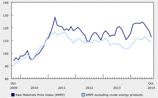 В годовом выражении индекс цен на сырье упал на 2,3% после снижения на 1,3% в сентябре. Последнее падение было максимальным с ноября 2013 года.