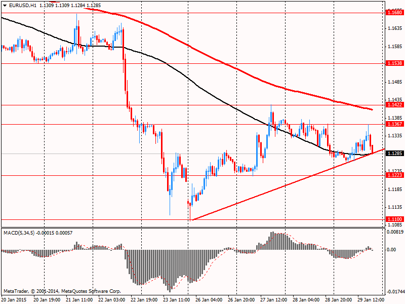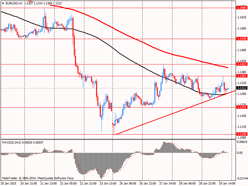 В 13:30 GMT США выпустит индекс стоимости рабочей силы и ценовой дефлятор за 4-й квартал. Затем в 14:45 GMT выйдет индекс менеджеров по закупкам Чикаго за январь. Индекс деловой активности Ассоциации Менеджеров в Чикаго представляет собой результаты опроса менеджеров по закупкам в сфере промышленности из Чикаго. Этот индекс затрагивает состояние производственных заказов, цен на производимую продукцию и товарных запасов на складах. Значение показателя ниже уровня 50 пунктов является индикатором замедления темпов развития экономики. По прогнозам, индекс снизился до 58,1 пункта с 58,3 пункта.