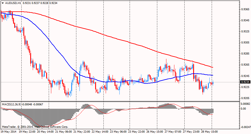 Серию второстепенных отчетов начнет Австралия данными по кредитованию частного сектора (01:30 GMT). Это индикатор, показывающий темпы роста объемов в секторе частного кредитования в Австралии. Показатель играет не очень существенную роль в вопросе влияния на динамику австралийского доллара на международном валютном рынке, однако, является предвосхищающим индикатором, по которому можно отслеживать возможный перегрев в банковском секторе, в частности, в вопросе активности выдачи кредитов. Ожидается, что показатель в апреле вырастет на 0,4%.