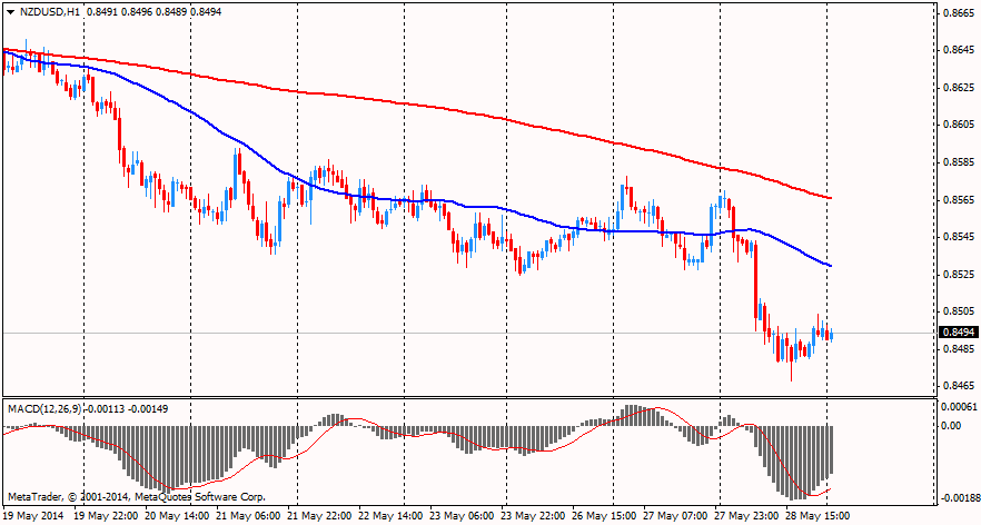 По итогам вчерашнего дня новозеландский доллар существенно просел против доллара США после того, как индекс уверенности бизнеса от банка ANZ Bank составил в этом месяце всего 53,5% против 64,8% в апреле. Напомним, показатель отображает настроения руководителей крупнейших компаний региона по улучшению экономики в течение следующих 12 месяцев.