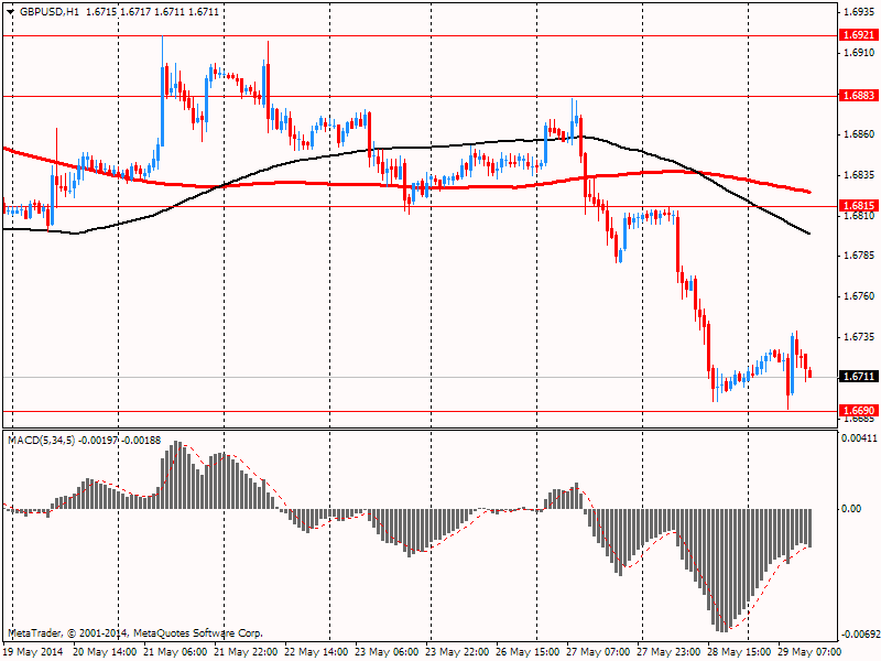Фунт вырос к $1.6740, обновив сессионный максимум после выхода позитивных данных по производству автомобилей в Великобритании. Апрельский показатель 2014 года увеличилось на 21% и составило 133,437 тыс. автомобилей, из которых 106,507 тыс. было экспортировано, свидетельствуют данные британского Общества производителей и продавцов автомобилей. Примерно половина экспорта британских автопроизводителей приходится на долю Европы.