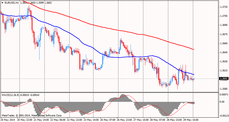 В 12:30 GMT Канада объявит об изменении объема ВВП за март и представит индекс цен на сырье за апрель, а США выпустит данные по личным доходам и расходам за апрель и опубликует базовый индекс цен расходов на личное потребление за апрель. В 13:45 GMT в США выйдет индекс менеджеров по закупкам Чикаго за май, а в 13:55 GMT будет представлен индекс потребительских настроений от Reuters/Michigan за май. В 21:00 GMT c речью выступит член Комитета по открытым рынкам ФРС Ч. Плоссер.