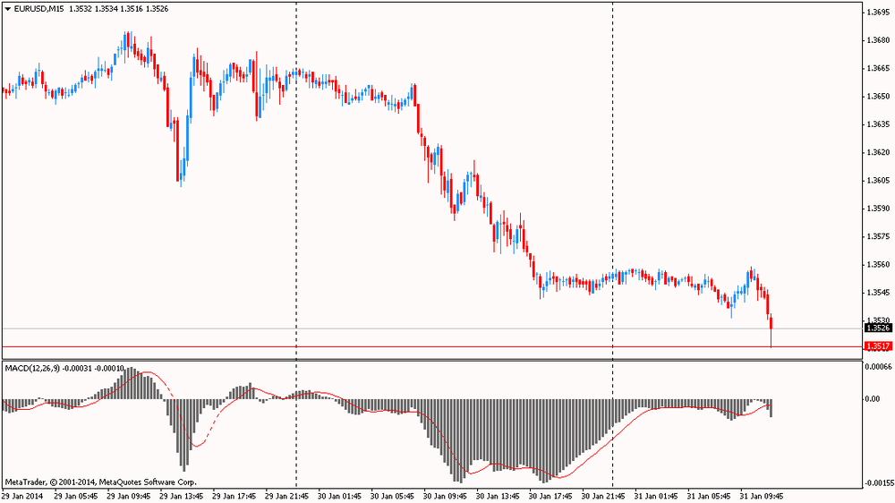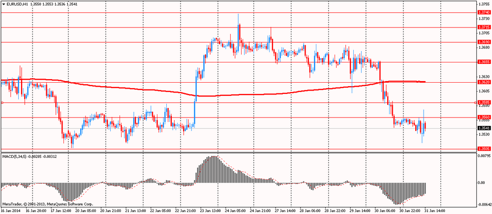 В декабре потребительские расходы в США увеличились на 0.4%, тогда как доходы остались без изменений. Индекс PCE повысился на 1.1% против целевого уровня ФРС 2%. В ответ на отчеты EUR/USD ускорил спад, коснувшись дневного минимума $1.3496, и сейчас торгуется с понижением на 0.4% - четвертый день снижения подряд.