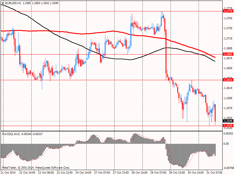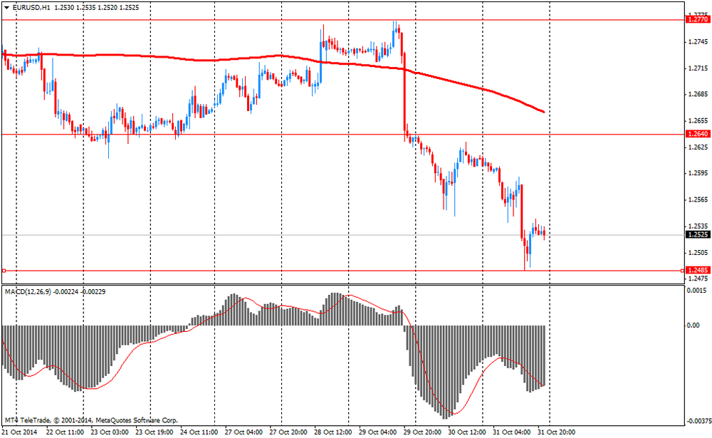 Доллар заметно вырос против евро, установив при этом новый максимум 2014 года. Укреплению американской валюты способствовали данные по личным доходам и расходам, несмотря на то, что они оказались хуже прогнозов. Как стало известно, расходы американских потребителей неожиданно уменьшились в прошлом месяце, зафиксировав при этом первый спад с января, что вызывает сомнение в способности экономики поддерживать стабильные темпы роста. Министерство торговли заявило: объем личных расходов упал в сентябре на 0,2%, по сравнению с повышением на 0,5% в августе. С момента окончания рецессии (в середине 2009 года) это было только третье ежемесячное снижение. Между тем, объем личных доходов американцев увеличился на 0,2% - наименьший рост с декабря. Тем временем, располагаемый доход, с поправкой на инфляцию остался неизменным. Экономисты предсказывал рост потребительских расходов на 0,1% и увеличение доходов на 0,3%. Отчет также показал, что инфляция в США осталась ниже годового целевого уровня Федеральной резервной системы (2 процента). Индекс цен расходов на личное потребление - предпочтительный инфляционный датчик ФРС - вырос на 0,1% с августа и на 1,4% по сравнению с прошлым годом. Без учета продуктов питания и энергоносителей базовые цены поднялись на 0,1% по сравнению с предыдущим месяцем и на 1,5% годовых. В Министерстве торговли сообщили, что падение потребительских расходов в прошлом месяце отражало резкое снижение закупок дорогостоящие товары - таких, как автомобили и холодильники. С поправкой на инфляцию расходы домохозяйств на товары длительного пользования упали на 1,9% с августа - самое резкое снижение с сентября 2009 года. На товары кратковременного пользования (с поправкой на инфляцию) расходы упали на 0,3%, в то время как на услуги увеличились на 0,1%. Отчет также показал, что американцы активизируют свои сбережения. Норма сбережений поднялась на 0,2% - до 5,6%, максимум с конца 2012.
