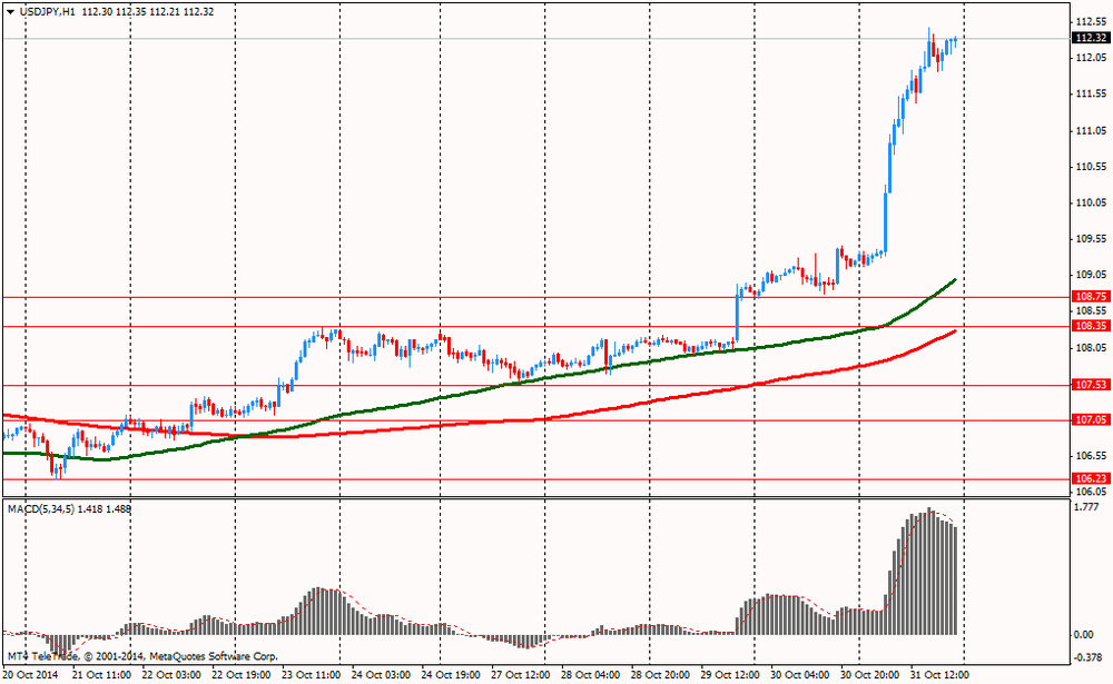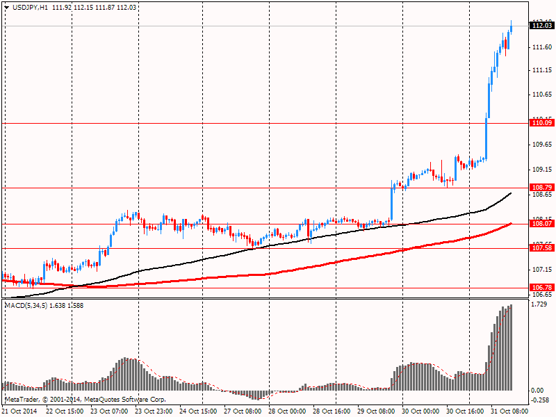 Иена резко упала в цене пробив отметку Y110.50 после того, как по итогам заседания Банка Японии ЦБ принял решение увеличить ежегодные покупки японских государственных облигаций до 80 трлн иен с предыдущего уровня 50 трлн иен. Таким образом, объем имеющихся в держании японских государственных облигаций достигнет 200 трлн иен к концу 2014 года, а денежная база достигнет 275 трлн иен к концу 2014 года. Этот факт оказал существенное давление на курс японской валюты.