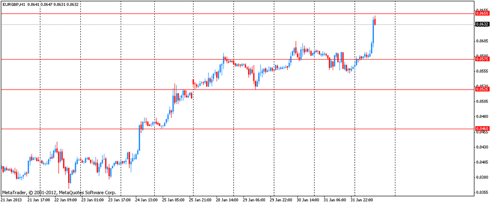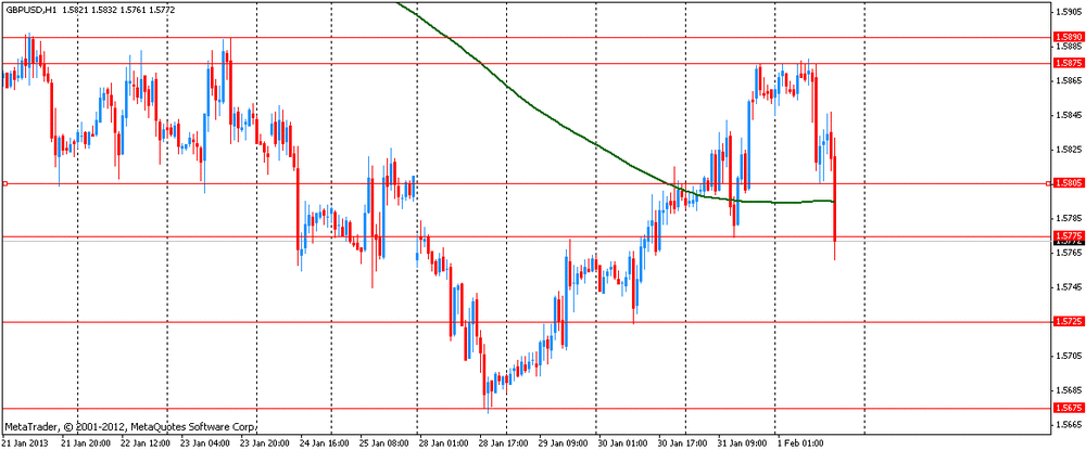 Также сегодня инвесторы ожидают выхода данных по числу рабочих мест вне сельского хозяйства США за январь, которые будут опубликованы в 13.30 GMT. Согласно прогнозу экономистов, число рабочих мест увеличится на 166 000, а уровень безработицы составит 7,8%.