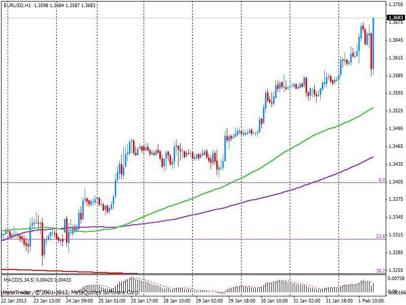 После того, как рынки переварили отчет по занятости и ставке безработицы, EUR/USD вернул большую часть позиций, натолкнувшись на максимум $1.3672, и двинулся к $1.3600.