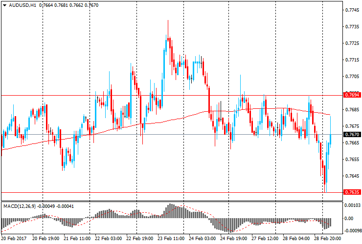 Австралийский доллар вырос после публикации данных по ВВП. Пара AUD/USD торгуется около 0,7670, после снижения сначала сессии до 0,7635.