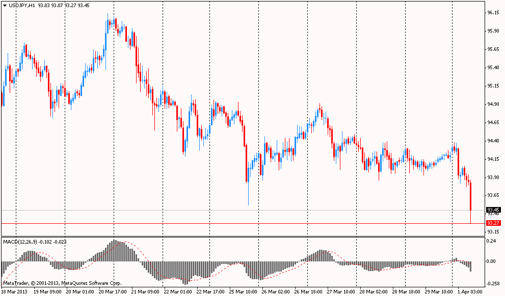 Иена укрепилась на фоне падения азиатских фондовых индексов, что повысило спрос на безопасные активы. Разочаровал и опубликованный сегодня индекс Танкан. Доверие среди крупных компаний японской перерабатывающей промышленности по итогам квартала улучшилось меньше, чем того ожидали экономисты. Квартальный индекс Танкан вырос в марте до минус 8 пунктов по сравнению с минус 12 в декабре. Однако такой рост не оправдал доверие аналитиков. Экономисты в среднем прогнозировали значение на уровне минус 7.