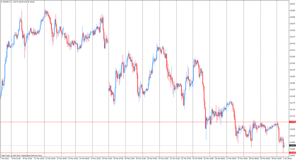 Евро упал против иены в преддверии завтрашних данных по рынку труда, которые могут показать, что уровень безработицы в еврозоне поднялся до рекордного максимума, за два дня до заседания Европейского центрального банка, на котором будет объявлено решение по процентным ставкам. Аналитики ожидают, что президент ЕЦБ Марио Драги и его коллеги оставят ставку на рекордно низком уровне 0,75%. Решение будет обнародовано 4 апреля. Дополнительно во вторник будет опубликован индекс деловой активности в производственном секторе, который, вероятно, подтвердит сокращение промышленности уже 20 месяц подряд. Между тем, эксперты отмечают, что в то время как недавнее падение евро может оказать дополнительную поддержку сфере обрабатывающей промышленности и сектору экспорта еврозоны, события на Кипре могут, в свою очередь, подорвать доверие среди компаний и домохозяйств в ближайшее время. Таким образом, процесс восстановления экономики, скорее всего, останется слишком медленным в ближайшие месяцы, если он вообще пойдет.