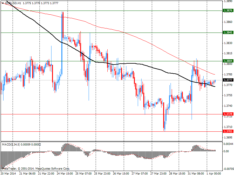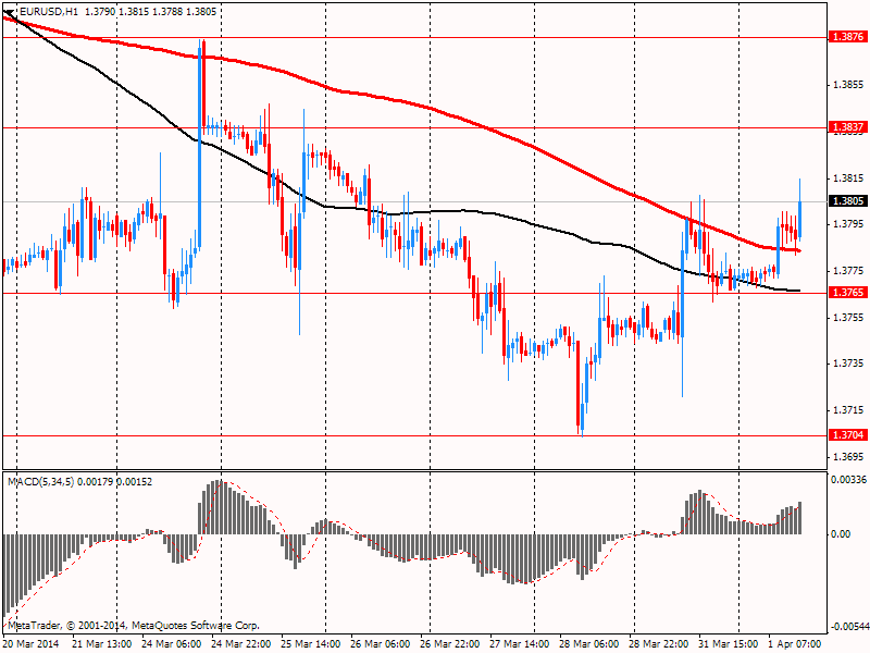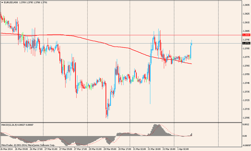 "Вчерашний CPI еврозоны за март ниже прогнозов очень мало повлиял на евро. EUR/USD продолжает торговаться под отметкой 1.3800. Отчет показал, что годовой индекс упал к минимуму 0,5% в марте, что ниже целевого уровня ЕЦБ".