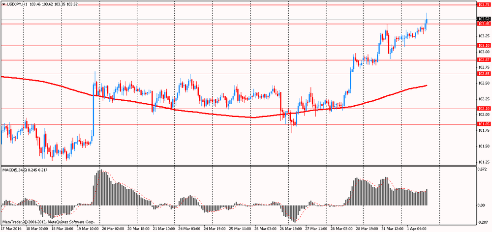 После открытия регулярной сессии Институтом управления поставками (ISM) был опубликован отчёт, который показал небольшое улучшение активности в производственном секторе США в марте. В то же время, рост показателя был недостаточным, чтобы подтвердить прогнозы экономистов. Индекс PMI для производственной сферы США вырос в марте месяце до 53,7 против 53,2 в феврале. Значение выше 50 указывает на расширение производственной деятельности. Отметим, что последнее значение было меньше оценок экспертов - ожидался рост до 54,2.