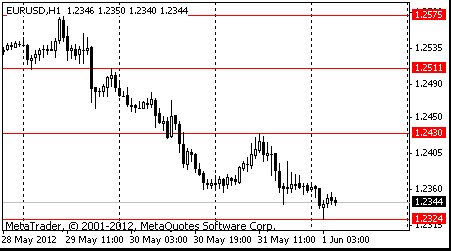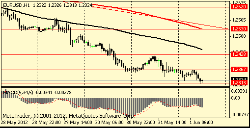 Курс евро отступил от двух-летнего минимума по отношению к доллару на фоне спекуляций, что его падение было слишком быстрым, и снижения доходности испанских облигаций. Ранее в ходе сегодняшних торгов евро/доллар опустился под отметку $1.2300, достигнув 23-месячного минимума из-за волнений по поводу банковского сектора Испании. Испанцы выводят средства за границу, боясь краха отечественных банков. По данным Банка Испании, переводы за рубеж в марте составили 66,2 миллиарда евро — максимальный показатель с начала ведения статистики в 1990 году. Кроме того, участников торгов разочаровала статистика по рынку труда еврозоны. Уровень безработицы в регионе за апрель достиг рекордного уровня в 11%.