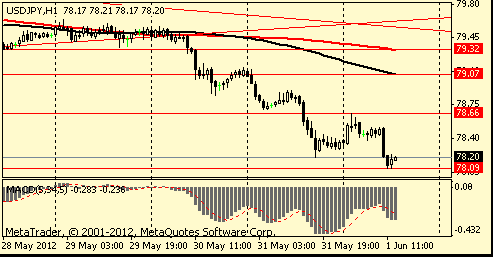 Сопротивление 2: Y78.90 (максимум европейской сессии 31 мая)
