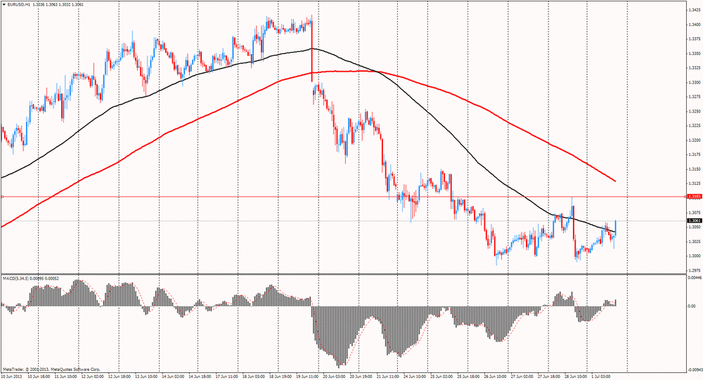 Курс евро вырос против доллара США, чему помогла статистика из еврозоны. Как стало известно, уровень безработицы в еврозоне вырос до 12,1%. Значение показателя в предыдущем месяце было пересмотрено с 12,2% до 12%. Результат оказался лучше прогнозов экспертов, которые ожидали роста безработицы в мае до 12,3%. За месяц число безработных выросло на 67 тыс. до 19,2 млн. Безработица среди молодежи составила 23,8%.
