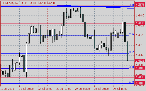 После закрытия рынка в пятницу в очередной раз ожидается голосование в Палате представителей по принятию плана республиканца Бейнера. Этот факт не поддерживает рынки, так как недавно президент США Барак Обама пригрозил, что в случае принятия в Конгрессе данного плана, он наложит на него свое президентское вето.
