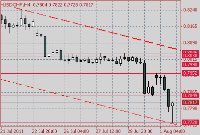 Поддержка 1: Chf0.7730 (исторический минимум, Chf0.7720 - пересечение канальных линий поддержки от 16 февраля и 08 июля)