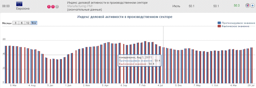 08:00 Еврозона Индекс деловой активности в производственном секторе (окончательные данные) Июль 50.1 50.1