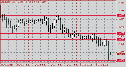 Комментарии: Фунт стабилизировался после вчерашних потерь. Промежуточная поддержка сформировалась в области $1.6220 (часовой-сессионный минимум), более сильная - на $1.6200/10 (минимумы 26 августа). Ниже поддержка отмечается на $1.6160 (минимумы 12 августа). Ближйшее сопротивление располагается на $1.6260 (бывшая поддержка). Выше находится максимум 31 августа $1.6330. Сильное сопротивление остается в области $1.6460 (61.8% Фибо падения с максимумов 19 августа, $1.6454 - максимум понедельника). Возврат выше сделает целью быков $1.6570 (максимум 23 августа). Более сильное сопротивление остается на $1.6620 (максимум 19 августа).