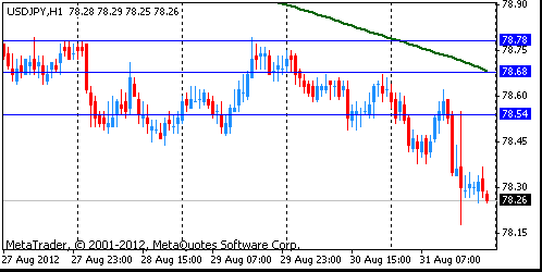 В пятницу доллар упал против иены до Y78.18, до самого низкого уровня с 13 августа после того, как глава ФРС Бернанке не дал открытых намеков на QE3, но сохранил надежду на расширение программы смягчения.