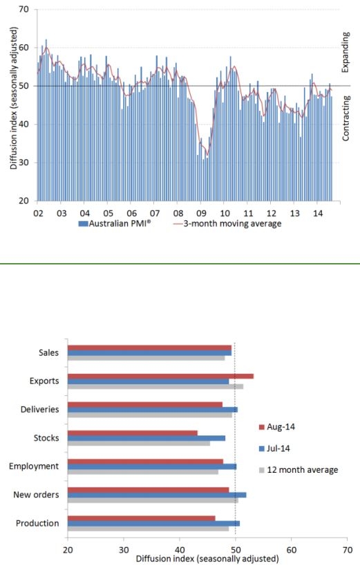 Индекс менеджеров по снабжению упал до 46,9 в августе, самого низкого уровня с мая 2013 года, с 47,8 в июле. Тем не менее, это было выше первоначальной оценки на уровне 46,5.