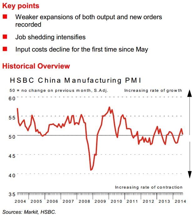Согласно представленным данным HSBC Holdings PLC, предварительный индекс менеджеров по снабжению (PMI) для производственной сферы Китая в августе упал до 50,2 против окончательного значения июля 50,3. Официальный индекс в июле также составил 51,7.