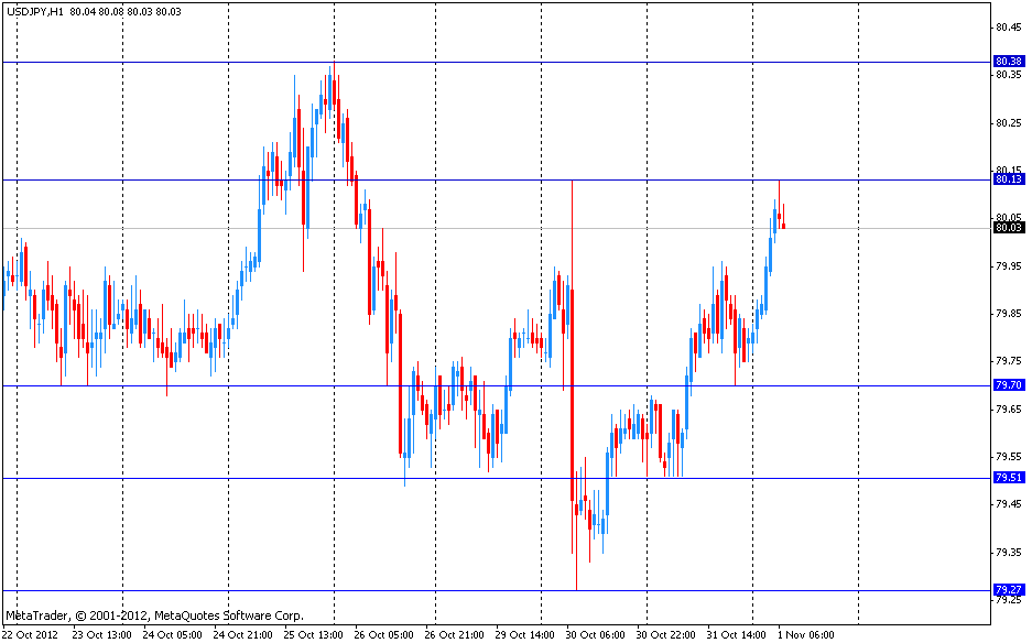 Доллар США вырос против японской иены в область внутридневных максимумов Y80.13 после публикации данных ISM, которые оказались лучше прогноза. Тем не менее, данные по потребительскому доверию оказались ниже прогноза, хотя и выросли.