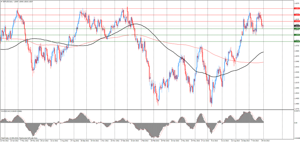 Поддержку доллару оказали данные о том, что в США экономическая активность в производственном секторе в октябре увеличилась в течение пятого месяца подряд. В целом экономика растёт на протяжении 53-го месяца подряд. Индекс деловой активности с сентября вырос на 0,2% до 56,2. Индекс растёт каждый месяц с июня, и значение в октябре максимальное за 2013 год. Индекс новых заказов в октябре вырос на 0,1% до 60,6, индекс выпуска снизился на 1,8% до 60,8%. Индексы новых заказов и объёма выпуска превышают 60 в течение трех месяцев подряд. Индекс занятости снизился на 2,2% до 53,2. Комментарии опрошенных в основном позитивны относительно делового климата, тем не менее противоречивые ответы относительно прекращения работы правительства и потенциального дефолта имели эффект в октябре. Из 18 отраслей промышленности 14 показали рост в октябре.
