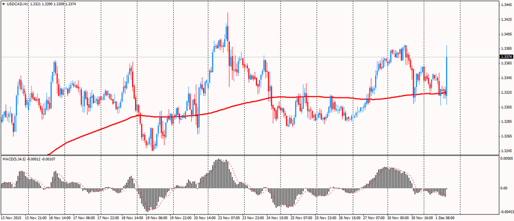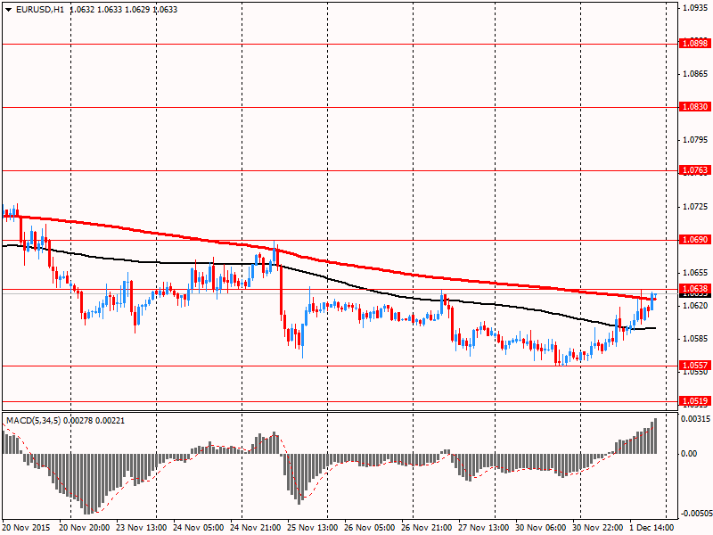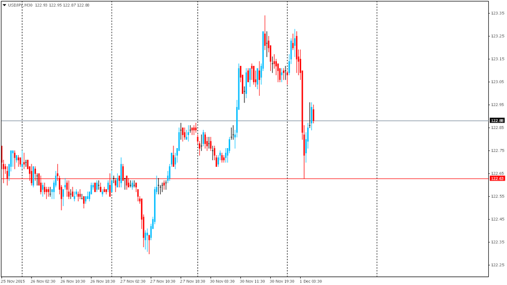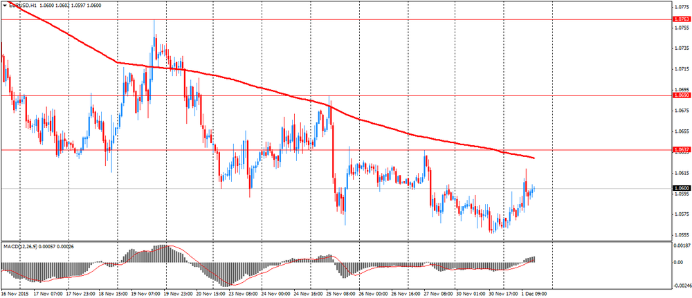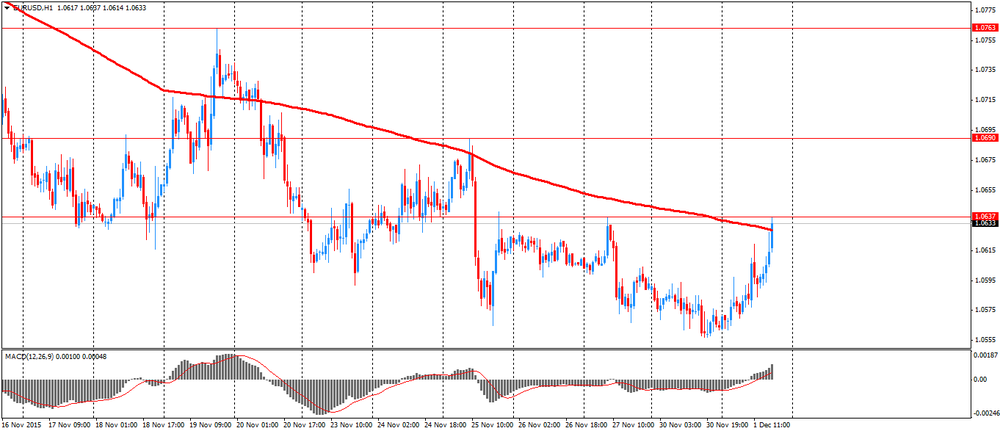 Доллар заметно подешевел против евро, достигнув минимума 27 ноября. Давление на валюту оказали слабые данные по деловой активности в производственном секторе США. Отчет от ISM показал, что активность в производственной сфере в ноябре сократилась впервые с конца 2012 года под давлением со стороны слабости мировой экономики и укрепления доллара США. Согласно данным, индекс PMI для производственной сферы в ноябре упал до 48,6 с 50,1 в октябре. Экономисты ожидали роста индекса до 50,4. Также в отчете сообщалось, что индекс запасов в ноябре упал до 43,0 против 46,5 в октябре, индекс производства снизился до 49,2 с 52,9, индекс новых заказов опустился до 48,9 с 52,9, индекс занятости вырос до 51,3 с 47,6, а индекс цен упал до 35,5 с 39,0. Хотя данные оказали хуже прогнозов, они не уменьшили ожидания относительно повышения ставок ФРС в декабре. Согласно фьючерсам на ставку по федеральным фондам, вероятность ужесточения политики ФРС на заседании 15-16 декабря составляет 79%.