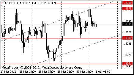Евро снизился против доллара после выхода неблагоприятной европейской статистики. Индекс PMI в Германии составил 48,4 пунктов, против 50,2 пункта месяцем ранее, а композитный показатель PMI по еврозоне снизился до отметки в 47,7 пунктов. Кроме того, согласно данным статистического управления Европейского союза, безработица в 17 странах еврозоны по состоянию на февраль 2012 года составила 10,8%, что больше на 0,01%, чем в январе. Данный уровень является максимумом безработицы с июня 1997 года, ещё с того времени, когда евро не ввели. Годом ранее этот показатель в феврале составлял 10%.